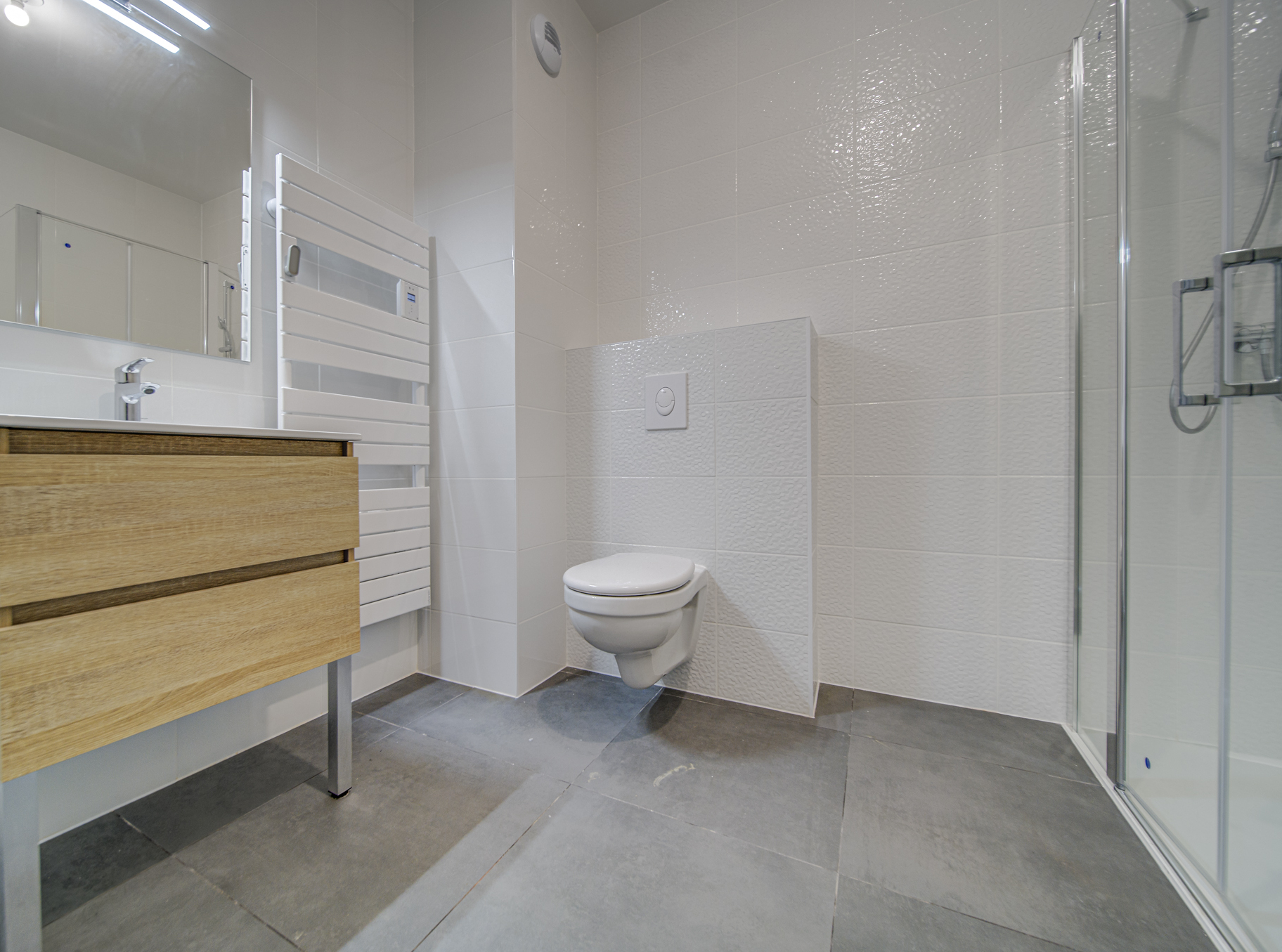 Salle de bains entièrement équipée dont radiateur sèche-serviettes