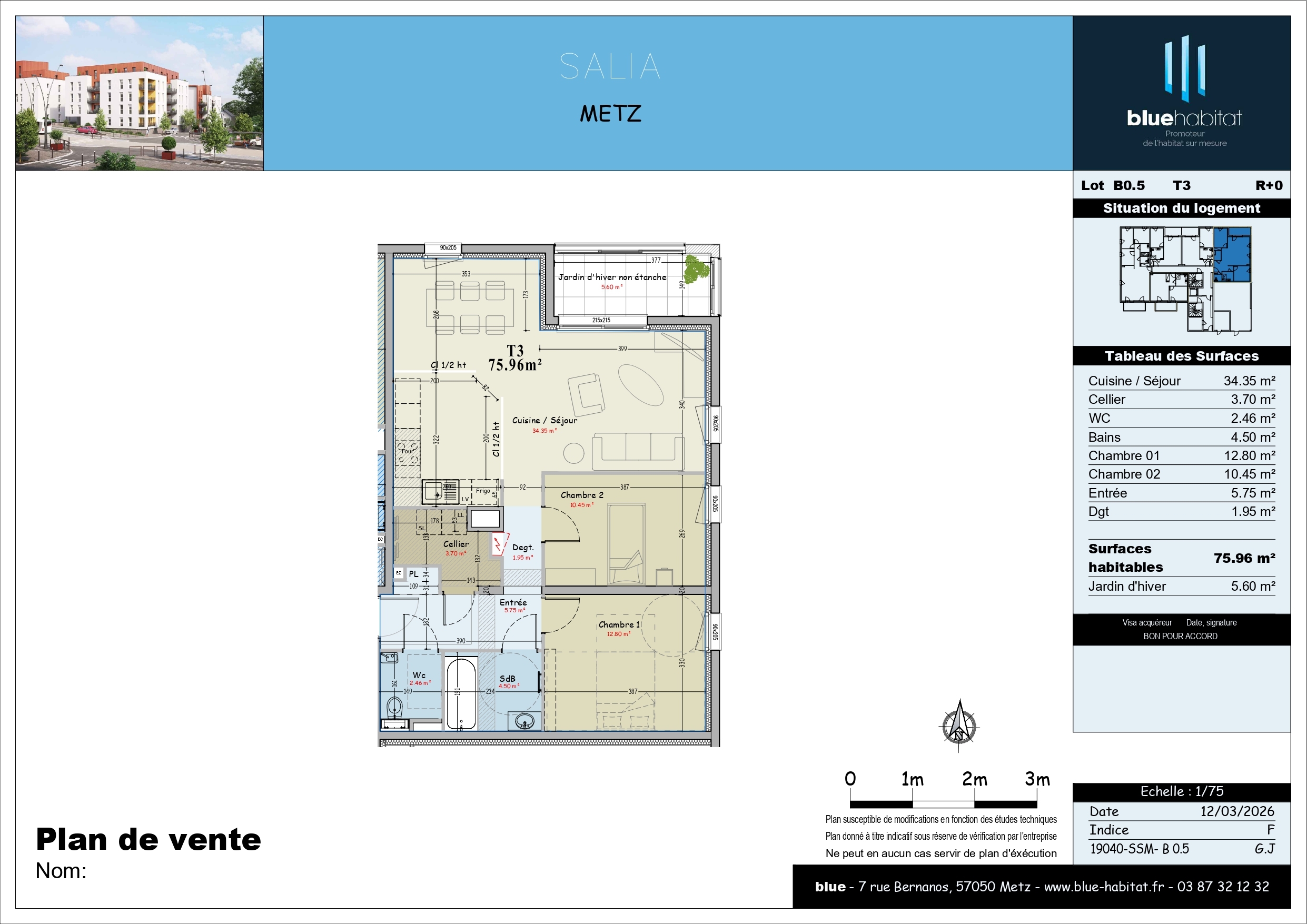 - Surface habitable : 75.96 m²